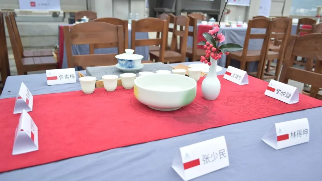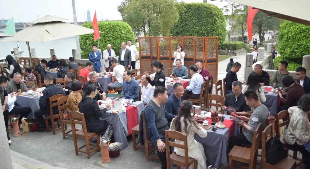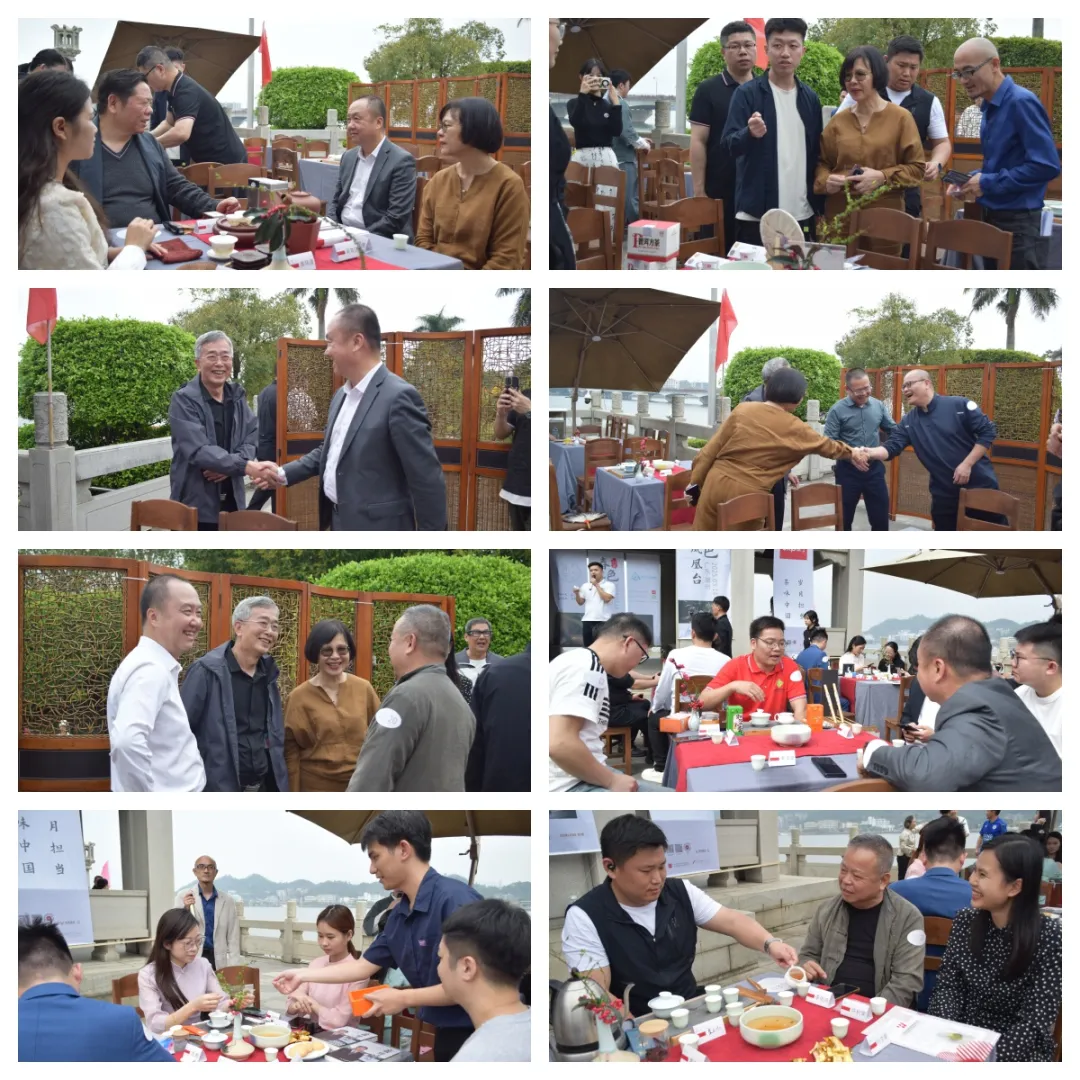 3月14日下午,在风景优美的古城潮州,美丽的凤凰洲凤凰台,春风吹拂韩江,微波荡漾。春节后第一站,也是第41站『时光·茗享会』在这里举行。潮州市商务局副局长李翊鹏,原中共潮州市农业农村局机关委员会副书记、委员翁鹏程,潮州市社会科学界联合会党组成员、副主席章碧武,潮州市潮安区茶叶协会创会会长林伟周,国家级非物质文化遗产潮州工夫茶茶艺省级非遗传承人叶汉钟,中国工艺美术行业艺术大师张瑞端,中国刺绣艺术大师、非遗潮绣省级代表性传承人、高级工艺美术师李淑英,广东省书画家协会原副主席、斌园艺术馆馆长孙丹,广东省民间文艺家协会潮州工夫茶专委主任委员李佳鸿,潮州工夫茶文化研究会秘书长何静,潮州茶产业促进会秘书长谢卫歆,潮州市民间文艺家协会秘书长佘勋荣,揭阳市美术家协会主席许小雄,揭阳市民间文艺家协会秘书长吴锐亮,揭阳市揭东区工艺美术协会副会长吴育武,汕头市超市供应链协会党支部书记兼秘书长李文蓉,广东双隆制罐有限公司销售总监范鹏,茂名市供橘化橘红产业发展有限公司董事长梁超明,广州益武国际展览有限公司董事长胡卫红、董事总经理李广韬等70多位来自潮州,广州,汕头,揭阳,茂名等地嘉宾出席。