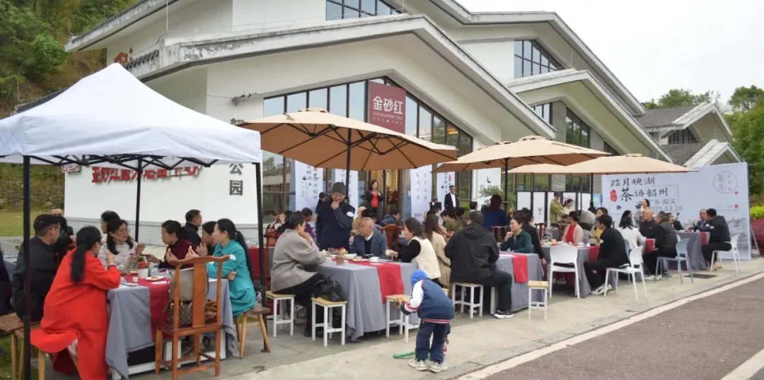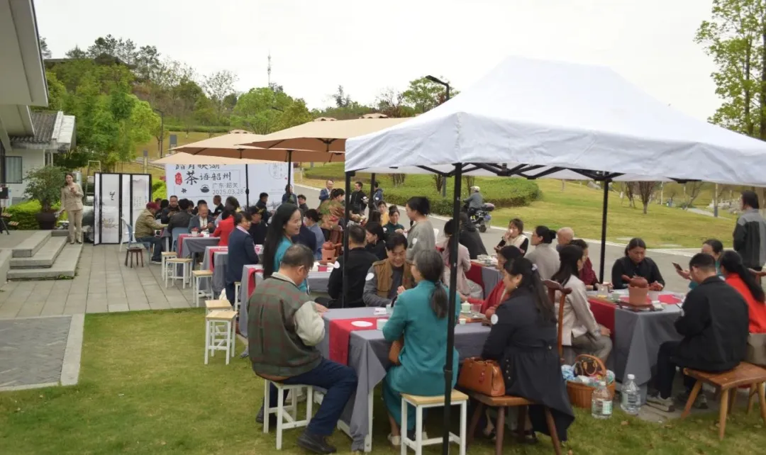 为了更好地贯彻落实“粤贸全国”活动的相关精神,在广东省商务厅、韶关市农业农村局的倾力支持下,这场以茶为核心的文化雅集,借山水为幕、以湖光为灯,邀行业协会名仕、茶界匠人、跨界翘楚及媒体同仁共襄盛举,于丹霞南麓的清风茶香中,共叙千年茶脉的传承与新生。参与本场时光茗享会的主要企业和单位有韶关市农业农村局、韶关茶产业协会、罗坑镇茶协、韶关民间文艺家协会、乐昌市曲协、韶关收藏家协会、乐善义工会、韶关市武术协会、韶关市作家协会、韶关市中等职业技术学校、韶关学院、金沙生态园、武江文旅投、乳源瑶族自治县山王茶业有限公司、韶关翁源珠江源茶业、韶关九龄茶社、乐昌市沿溪山茶场有限公司、韶关曼卓美学酒店、乐昌市树叶子茶业有限公司 、韶关市曲江去罗坑源山源农业旅游开发有限公司、君林天下商业综合体、武江区十全黄酒馆/韶关市品古悦农业科技有限公司、韶州茶庄、忆年茶坊、品酒茶商行、韶州集团(广东)有限公司、三品茶业、景行茶坊、明慧文化、广东盈隆律师事务所、大码头茶铺、莲子庆典创意工作室艺术气球创意派对策划、罗坑鳄蜥自然保护区、韶关邮政、和煦商贸行、韶关市玖天广告有限公司、韶关日报,以及广州益武国际展览有限公司董事长胡卫红、董事总经理李广韬等70多位嘉宾出席。